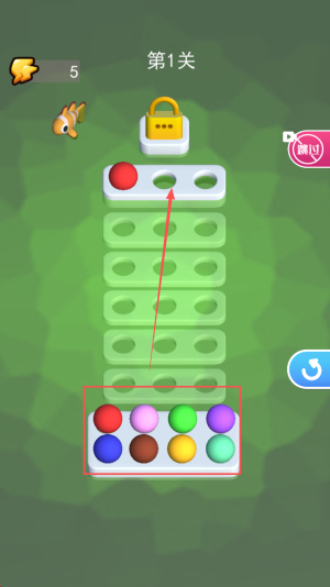 1、开启分类闯关:进入游戏熟悉规则,明确 “按颜色摆放彩色球球、完成关卡目标”,解锁初始基础关卡。