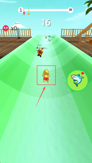 4、冲刺争夺第一:保持滑行节奏,持续超越前方玩家,避开淘汰风险,全力向滑梯终点冲刺,从大量玩家中脱颖而出,赢下对决。