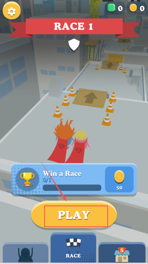 1、首先,点击“PLAY”进入“RACE 1”赛场。