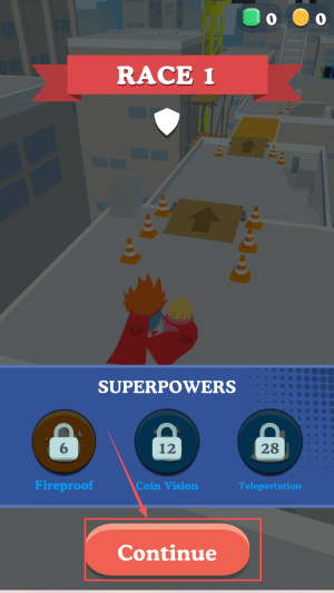 2、接着,在“SUPERPOWERS”里选“Fireproof”再点“Continue”。