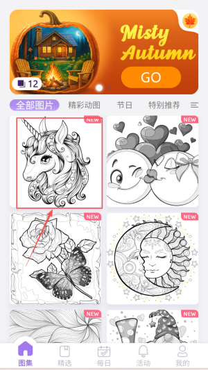 1、开启涂色创作:进入游戏选择喜欢的未上色画作,明确 “用颜料工具填涂、让画作生动” 的目标,熟悉颜料与工具选择操作。