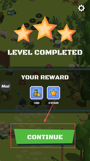 3、如何领取奖励?完成关卡后,点击“CONTINUE”按钮领取奖励,包括金钱和星星。