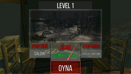 3、如何进入关卡?点击“OYNA”按钮后,选择“SİLAH”进入关卡。