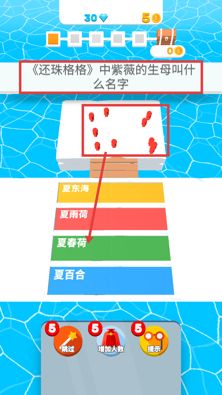3、若遇到影视相关的题目,例如“《还珠格格》中紫薇的生母叫什么名字”,需挑选正确答案【夏雨荷】,以此来获取游戏进度。