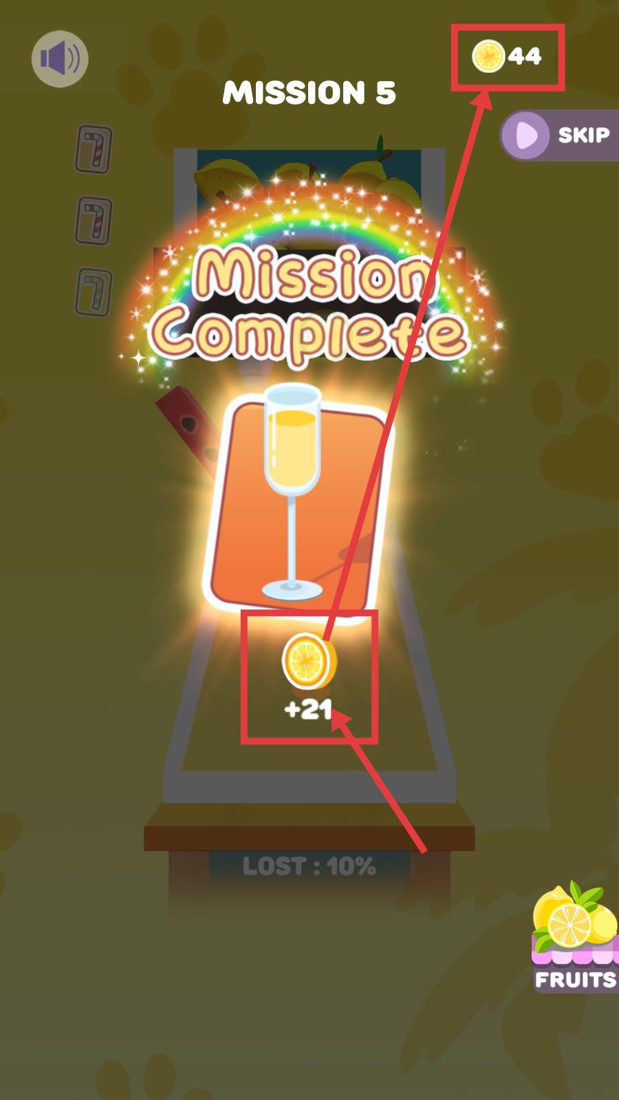 4、成功制作出饮品后,界面会显示【Mission-Complete】,并获得【+21】柠檬等奖励,积累柠檬数量可用于后续关卡。