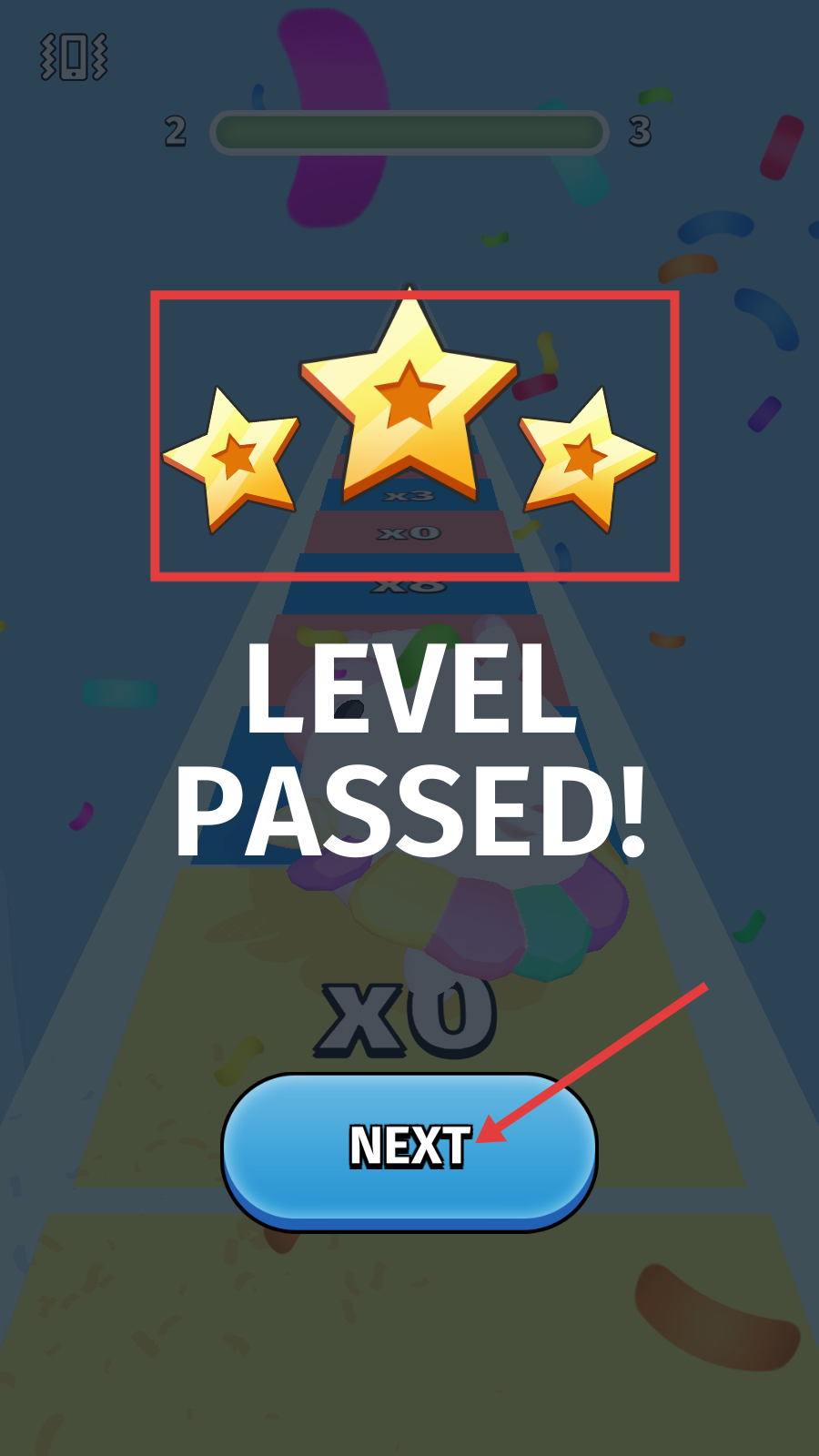 4、成功通关后,界面会显示【LEVEL-PASSED!】,此时点击“NEXT”按钮,即可进入下一关挑战。