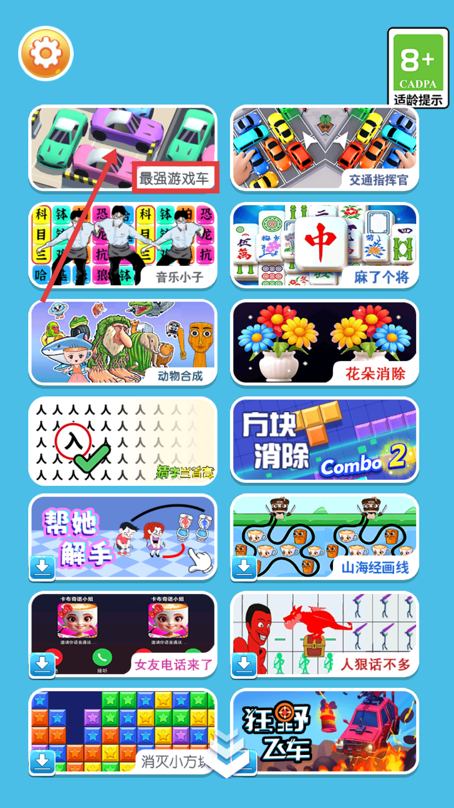1、选择【最强游戏车】进入游戏,界面有多种玩法选项,可根据喜好开启,先熟悉整体布局。