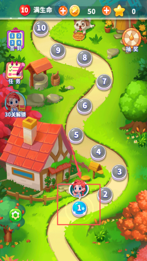 3、然后,在游戏地图上选择关卡1开始游戏。