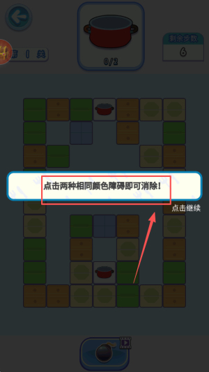 2、接着,按照提示点击两种相同颜色的障碍即可消除。