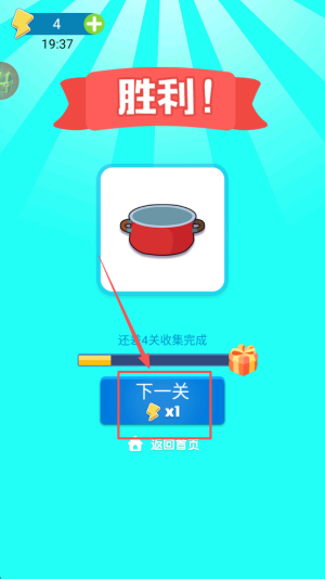 4、最后,当胜利时,点击“下一关”按钮继续游戏。