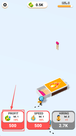 2、接着,当您赚取了足够的金币后,点击“PROFIT”按钮以增加利润。