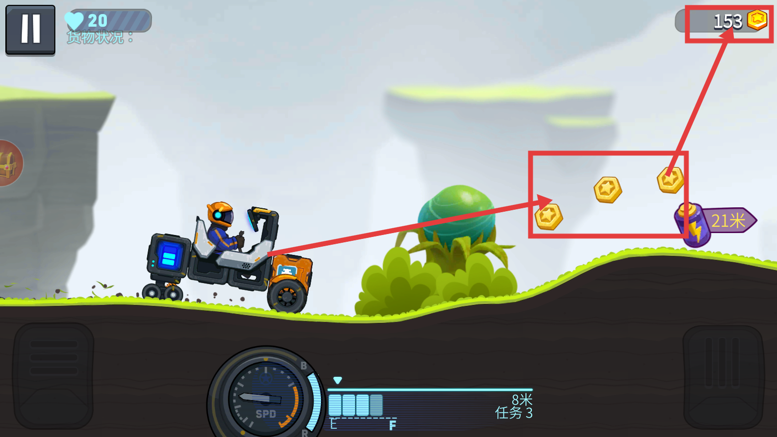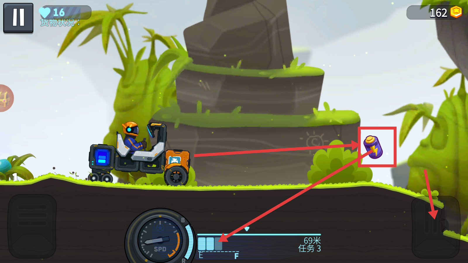 3、遇到紫色电池道具时及时收集,能补充载具的能量,助力完成长距离运输。