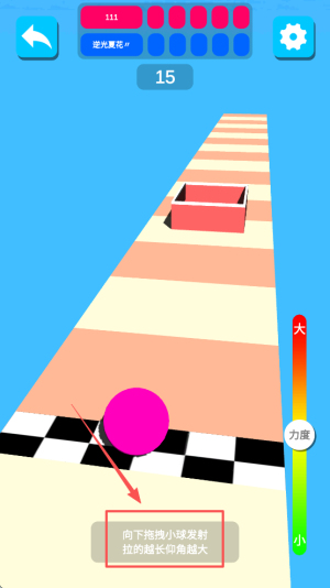 3、然后,向下拖拽小球发射,拉的越长力度越大。