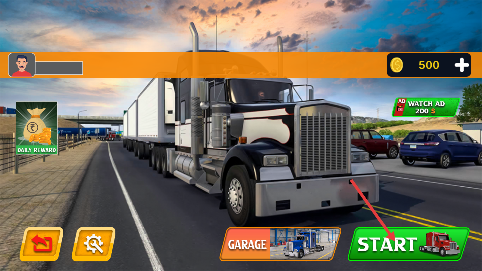 1、点击绿色【START】按钮,进入卡车驾驶游戏,开启运输任务。