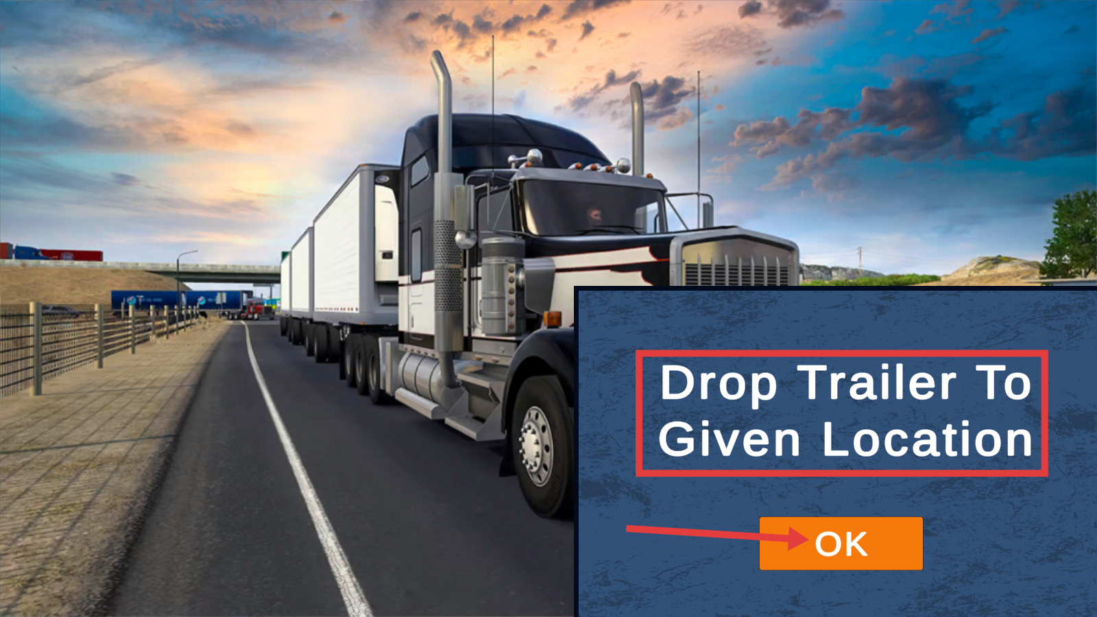 4、根据任务提示【Drop-Trailer-To-Given-Location】,将拖车精准放置到指定位置,完成运输任务。