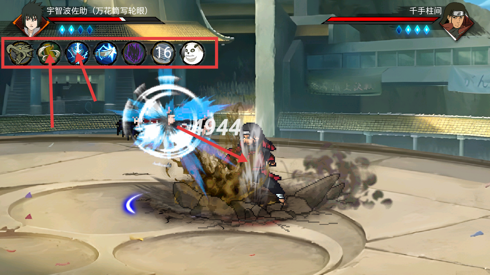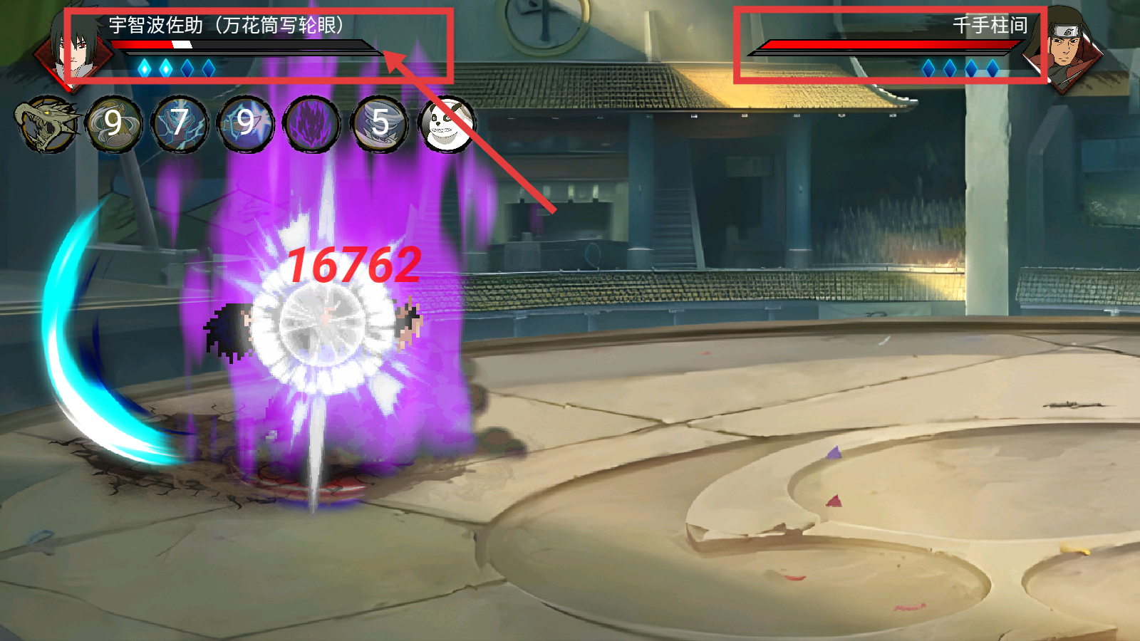 3、对战过程中,需关注双方角色的血条状态,像【宇智波佐助(万花筒写轮眼)】和【千手柱间】的血量,以此判断攻防节奏。