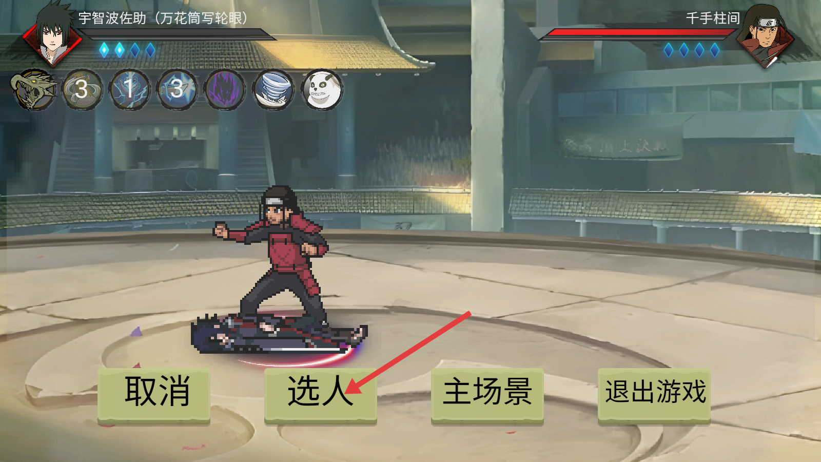 4、一局对战结束后,可点击【选人】按钮更换参战角色,从而体验不同角色的技能与战斗风格。