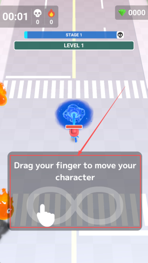 2、如何控制角色,在游戏中,按照提示“Drag your finger to move your character”拖动手指来移动角色。