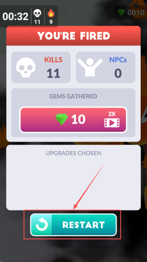 4、如何重新开始游戏,游戏结束后,点击“RESTART”按钮重新开始当前关卡。