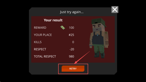 4、重新开始:游戏结束后,点击弹出界面上的“RETRY”按钮重新挑战。