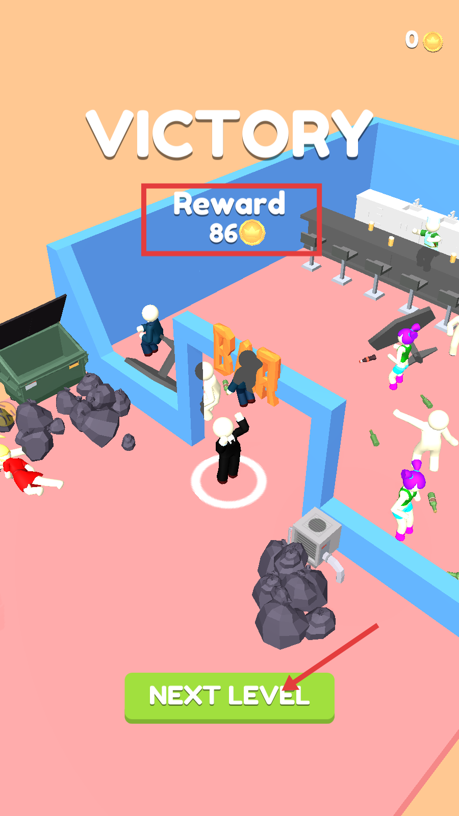 4、成功完成任务后,屏幕显示【VICTORY】,获得【Reward-86】金币,点击【NEXT-LEVEL】可进入下一关。