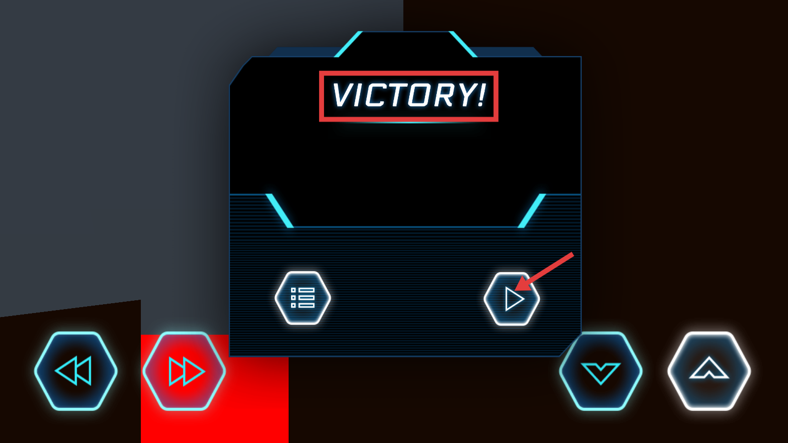 4、成功通关后,屏幕显示【VICTORY!】,点击右侧箭头按钮,即可进入下一关继续挑战。
