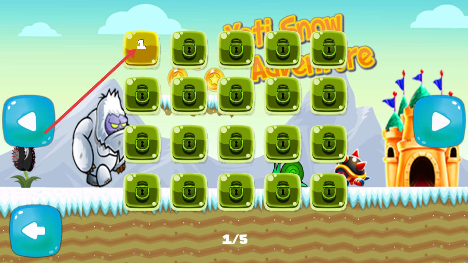1、进入游戏后,选择【1】号关卡开始冒险,其余带锁关卡需后续解锁,点击对应关卡即可进入游戏场景。