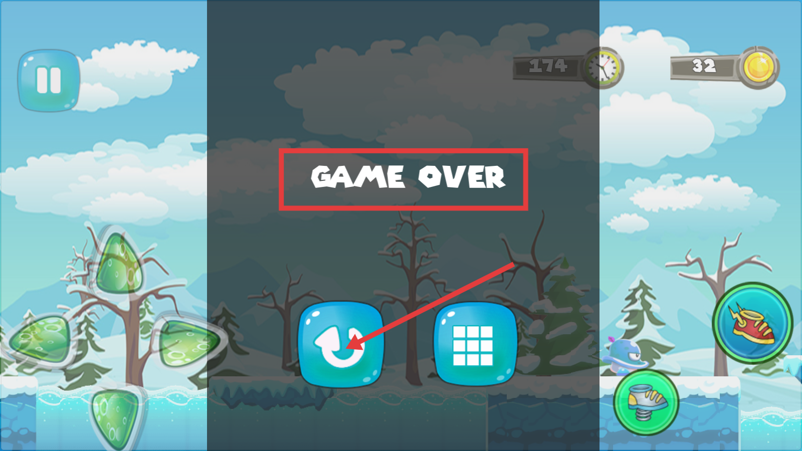 4、若出现【GAMEOVER】提示,说明游戏失败,此时可点击左侧带返回箭头的按钮重新开始本关卡,继续挑战积累更高分数。