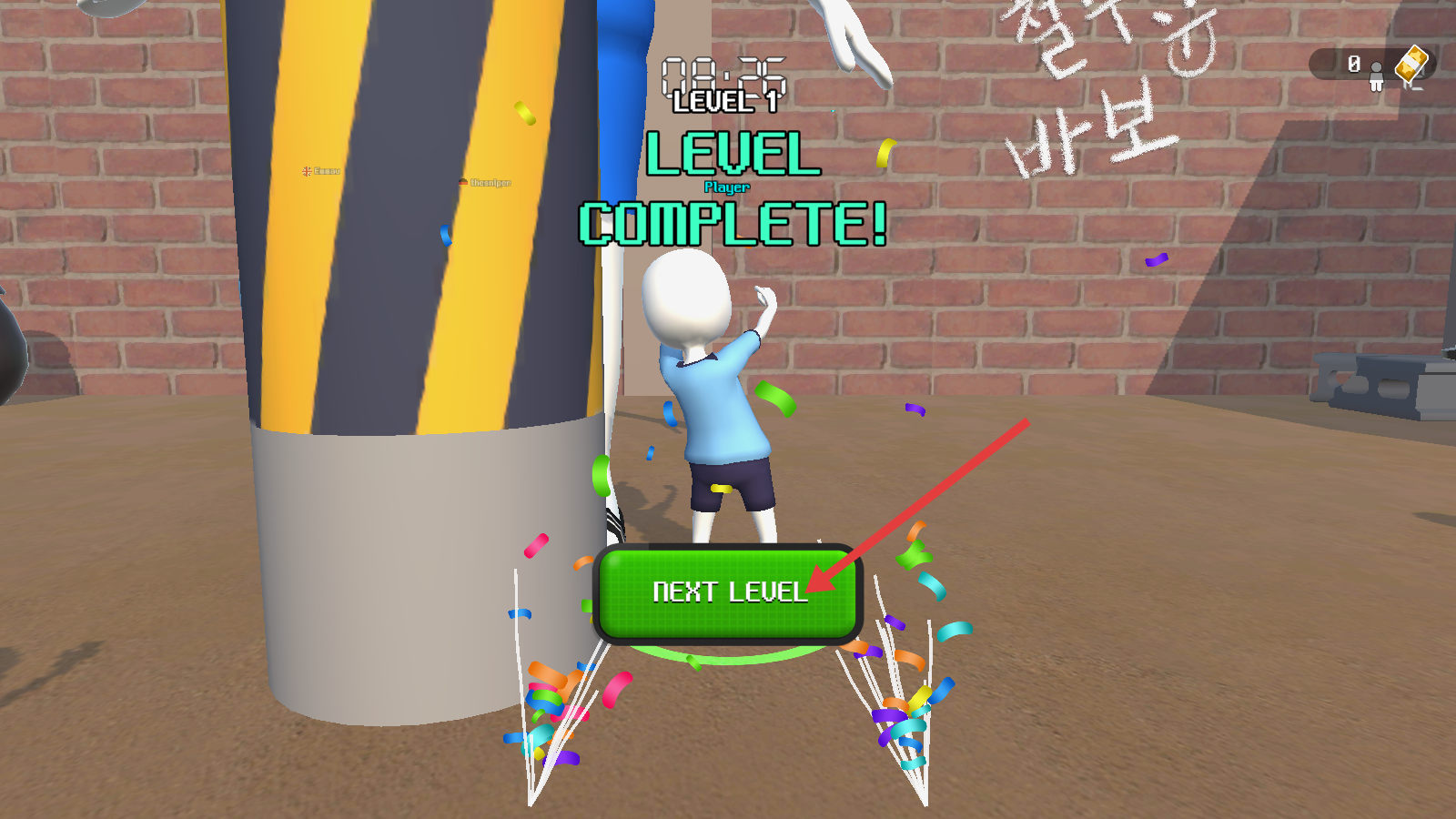 4、完成【LEVEL-1】后,界面显示【LEVEL-COMPLETE!】,点击绿色的【NEXT-LEVEL】按钮,进入下一关挑战。