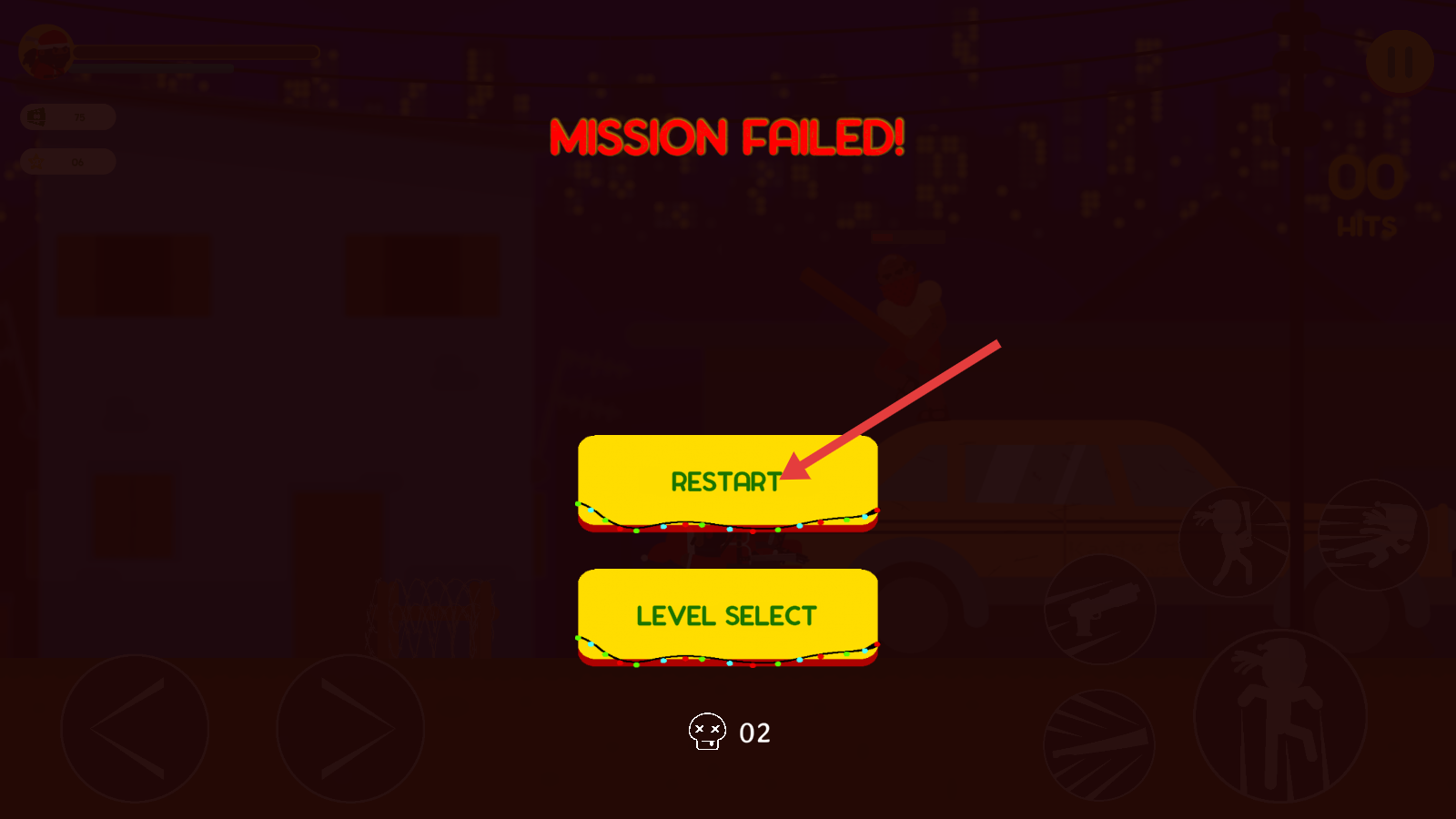 4、若显示【MISSION-FAILED!】,点击【RESTART】按钮重启任务,总结经验后再次挑战,争取完成关卡。