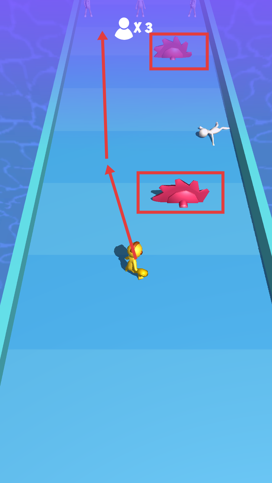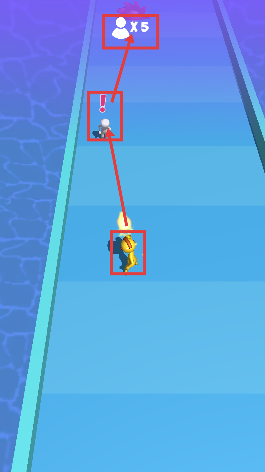 2、闯关时遇到带【!】的小人,靠近互动,能让跟随的人数从【×5】这类标识开始增加,助力闯关。