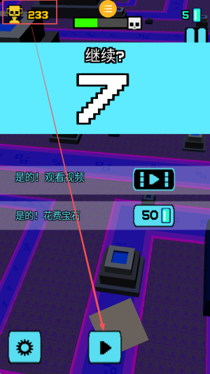 4、如何继续游戏:在游戏结束后,选择“是的!观看视频”或“是的!花费宝石”来继续游戏。