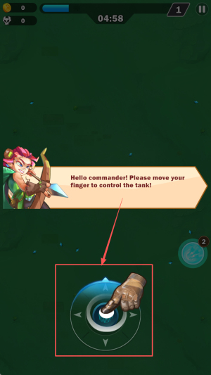2、如何控制角色:在游戏教程中,按照指示移动手指来控制坦克。