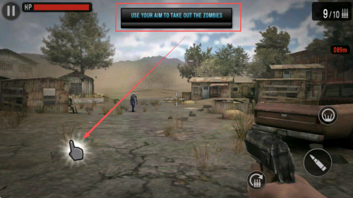3、如何瞄准:点击屏幕中央的瞄准按钮,使用准星对准僵尸进行精确射击。