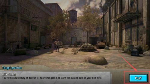 4、如何开始练习关卡:在训练场界面,点击“PLAY”按钮开始步枪练习。