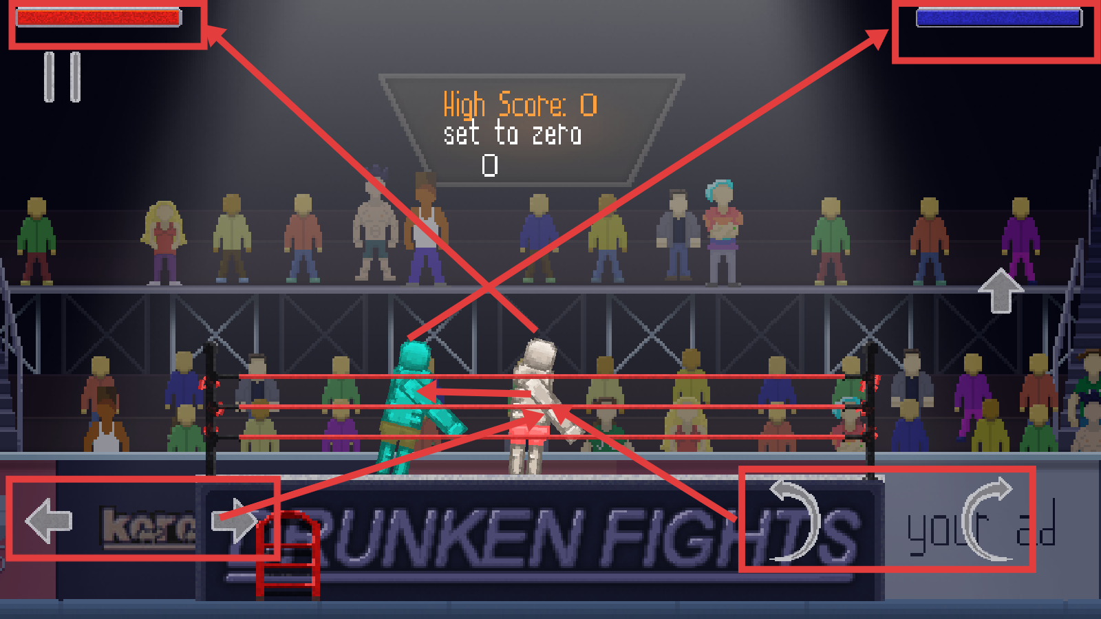 2、格斗时留意左上和右上的血条,借助左右方向键移动,右侧旋转按钮可发起攻击。