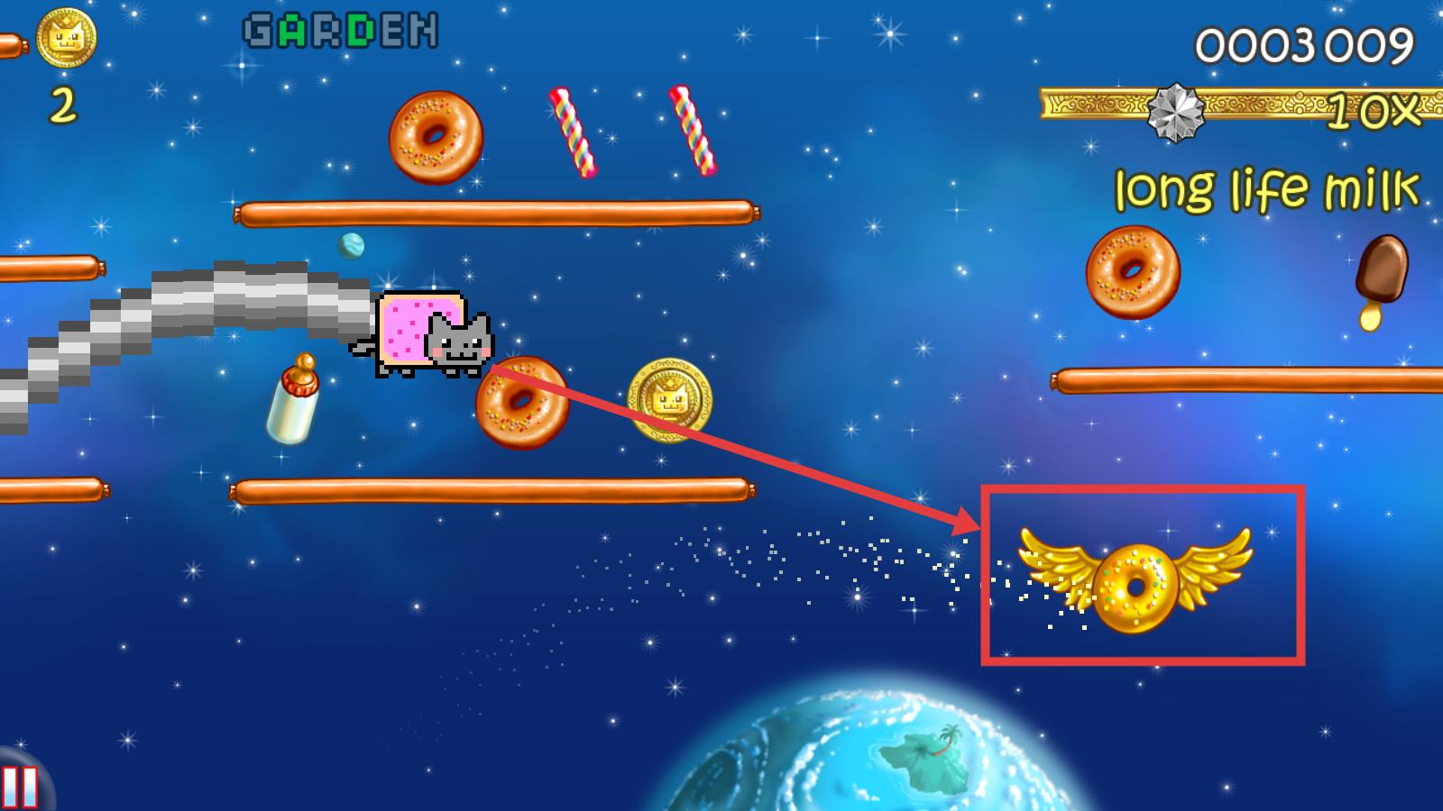 3、遇到【带翅膀的甜甜圈】时优先获取,它能让角色快速移动,帮助叠加combo倍数,提升得分效率。