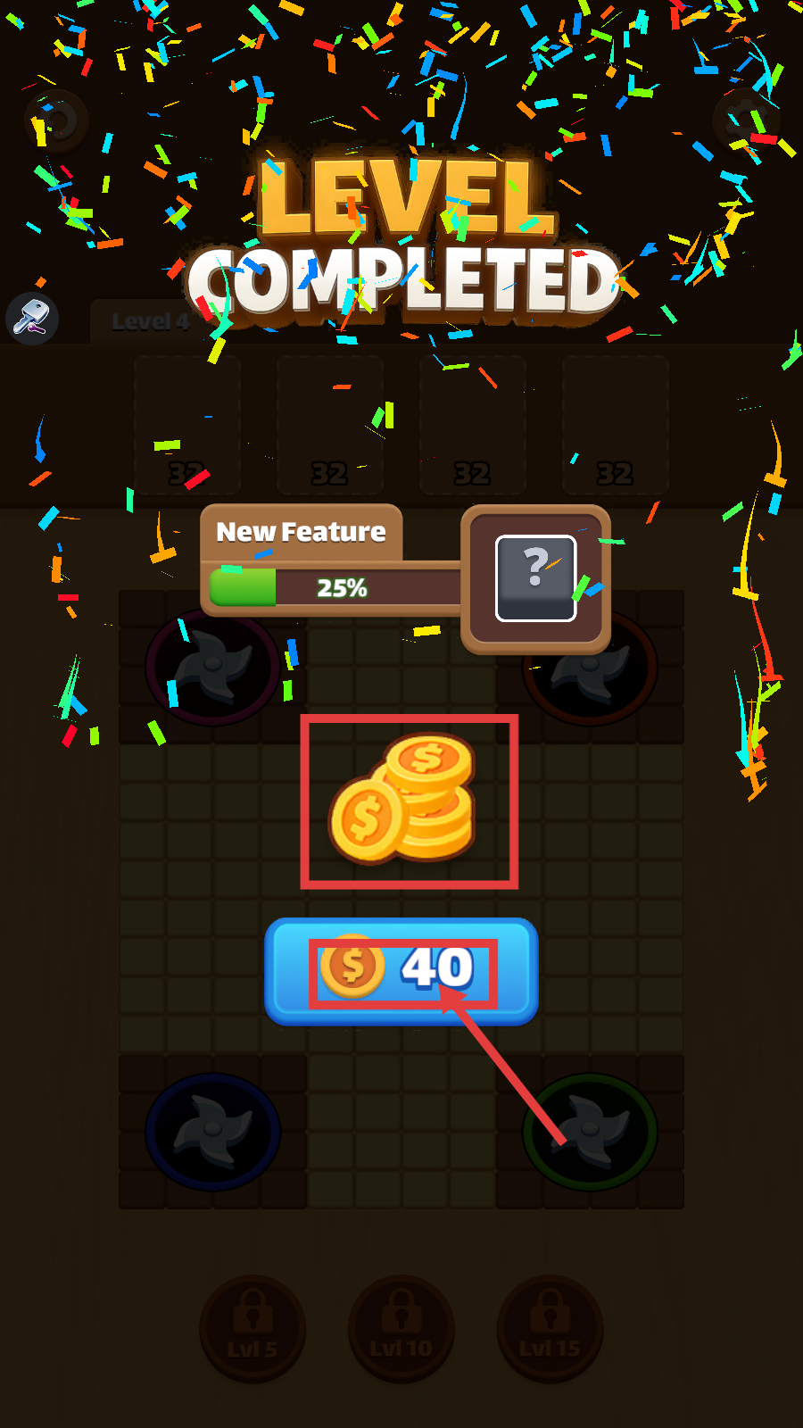 4、成功完成所有水果匹配后,关卡会显示【LEVELCOMPLETED】,可获得40枚金币奖励,积累资源用于后续关卡挑战。