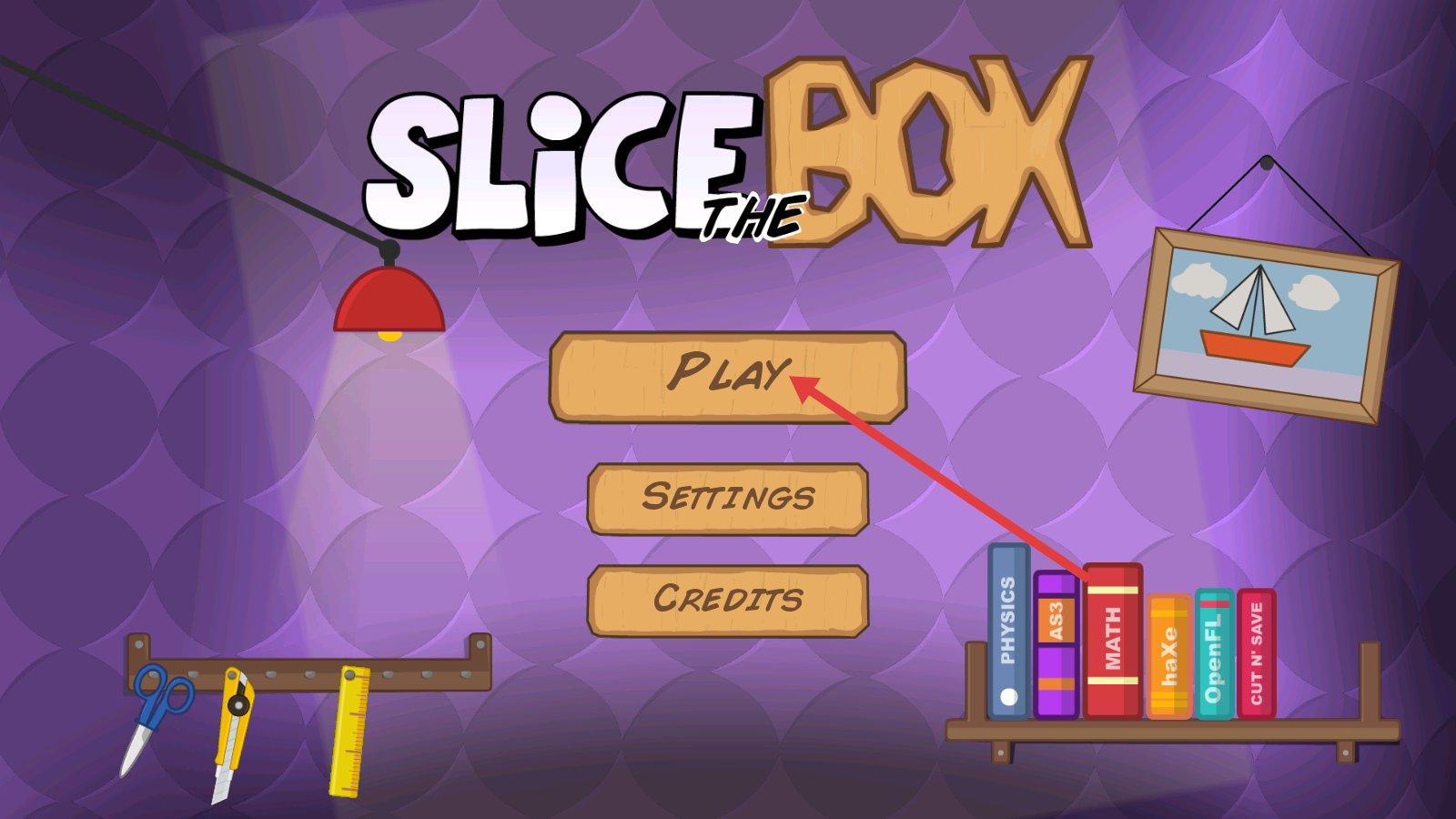 1、进入《SlicetheBox》游戏后,点击【PLAY】按钮,开启木板切割的关卡挑战,正式进入游戏流程。