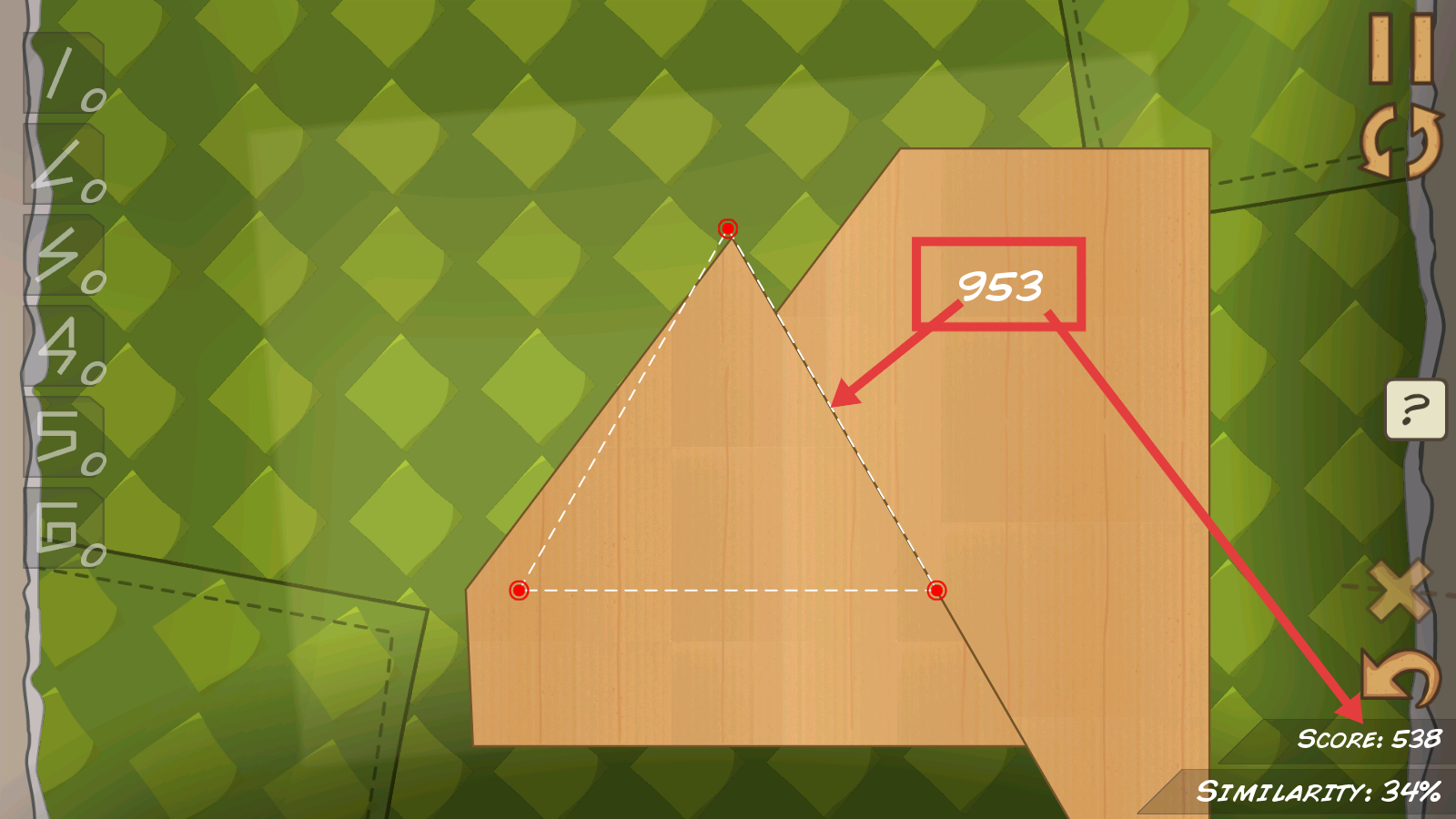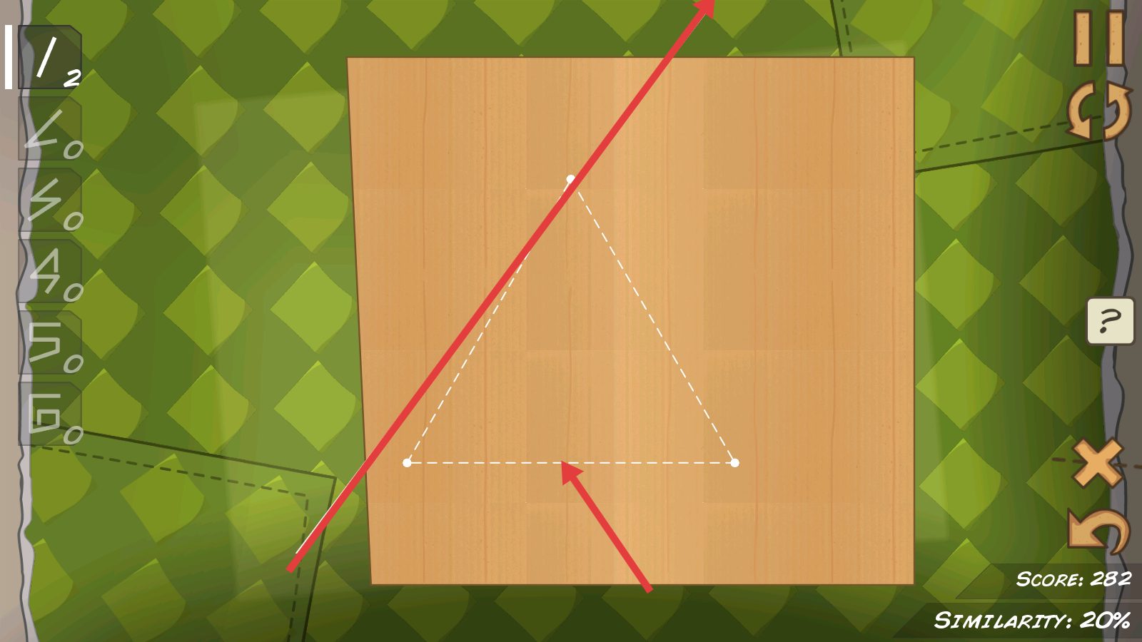2、在关卡内,观察木板上的虚线轮廓,沿着红线指引的方向,精准切割木板,逐步匹配目标形状。