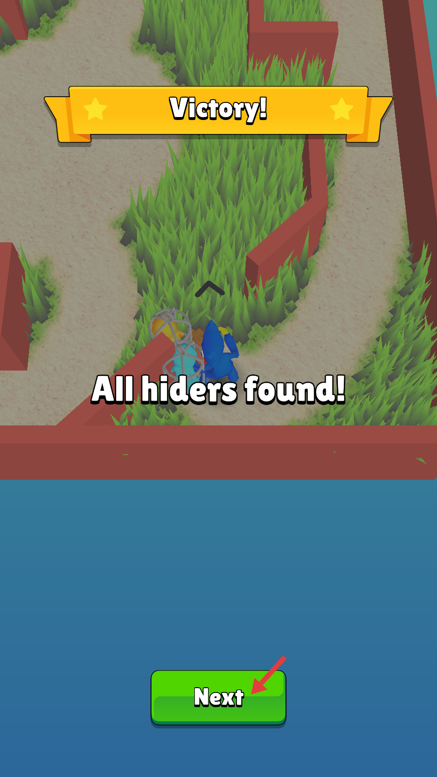 4、成功找到所有隐藏角色,获得【Victory!-Allhidersfound】,点击【Next】按钮,进入下一关挑战。