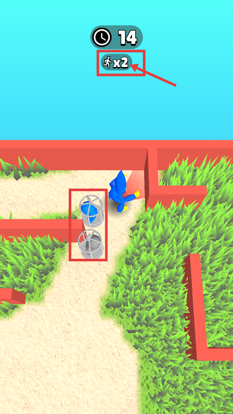 3、持续在迷宫中搜寻,将隐藏角色关进【笼子】,直到剩余【x2】角色,接近完成关卡任务。