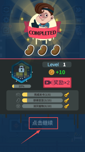 4、最后,完成关卡后点击“点击继续”按钮进入下一关。