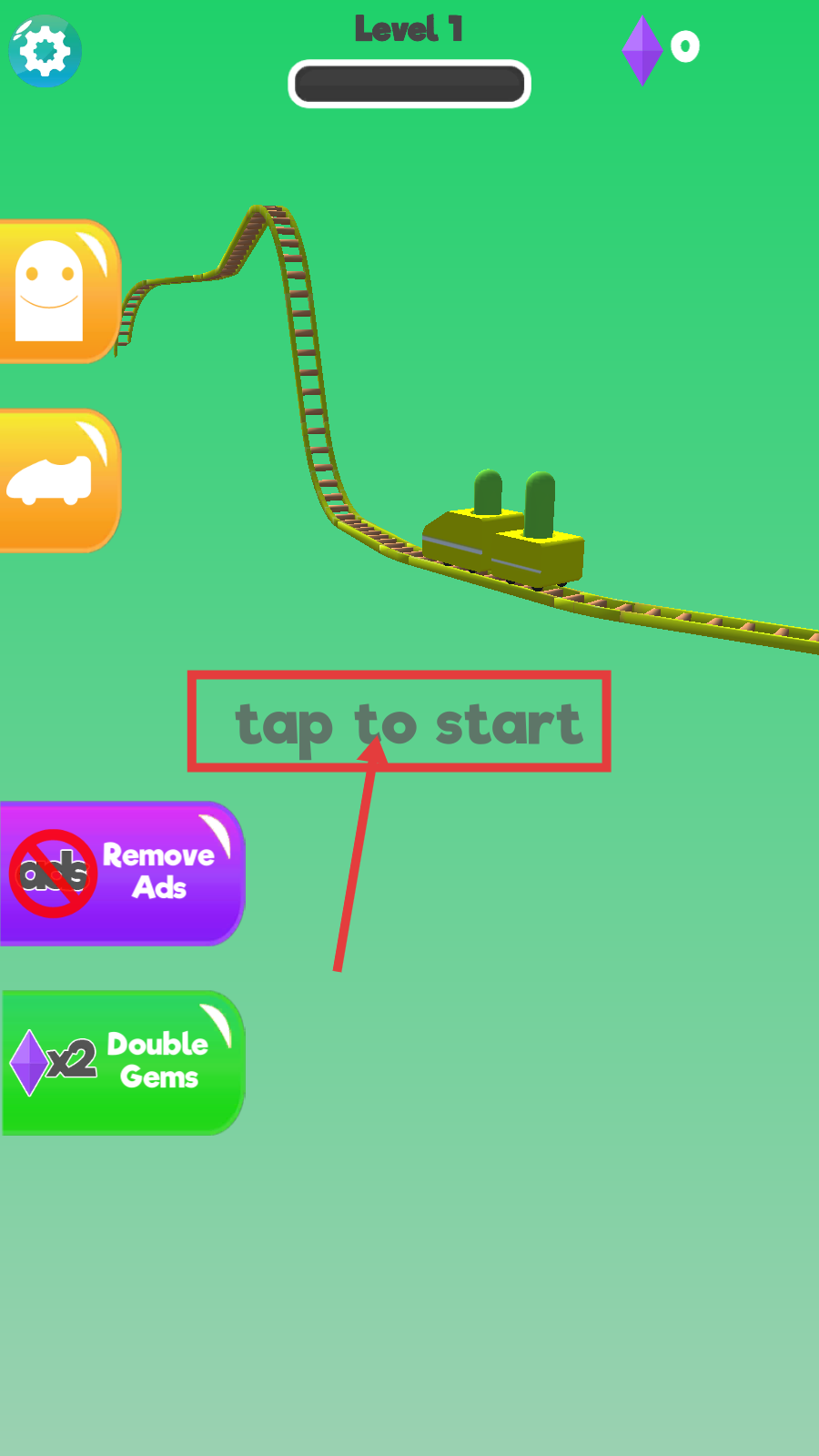 1、在【Level-1】中,点击【tap-to-start】区域,开始过山车关卡挑战,开启宝石收集之旅。