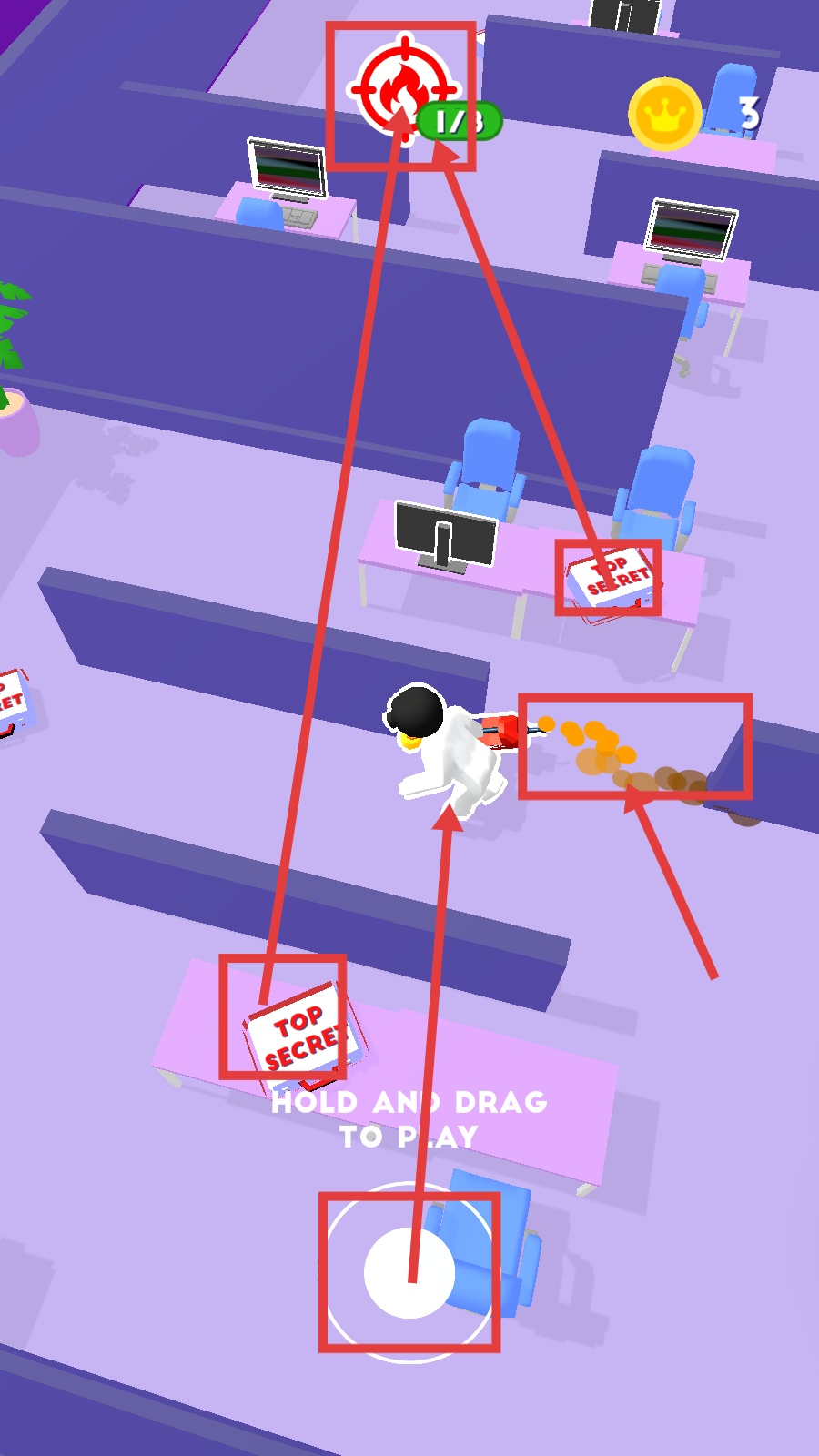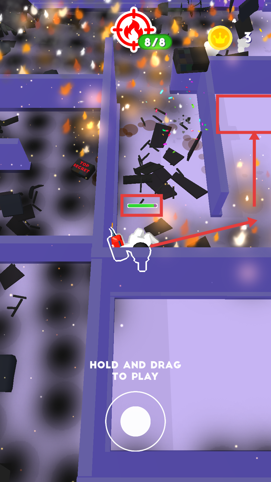 2、操控角色点燃火焰,收集【Top-Secret】物品,完成【1/8】火焰目标,推进关卡进度。