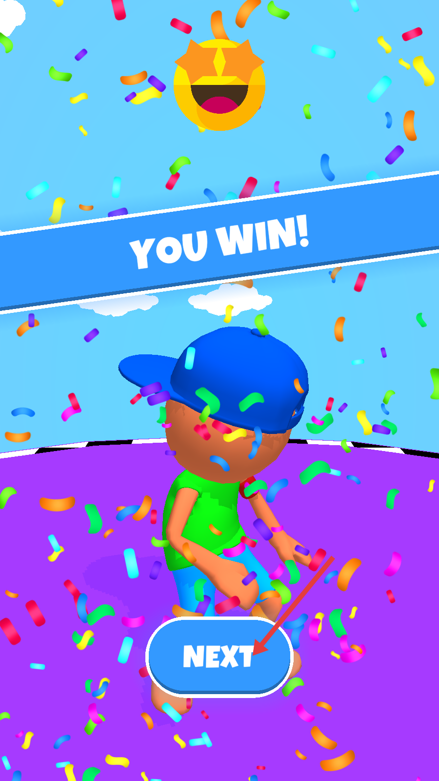4、通关后出现【YOU-WIN】界面,点击【NEXT】按钮,进入下一关继续滑板跑酷挑战。