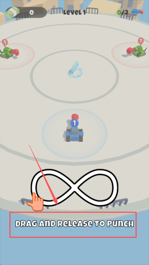 1、开启坦克对决:进入游戏选择关卡与战场,明确 “驾驶坦克、用橡胶手套弹飞对手” 目标,熟悉坦克移动与手套发射的基础操作。