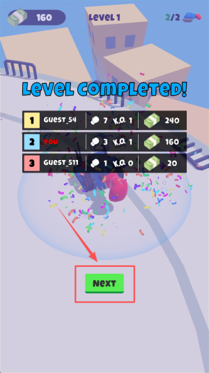 4、最后,完成当前关卡后,点击“NEXT”按钮进入下一关,继续游戏。