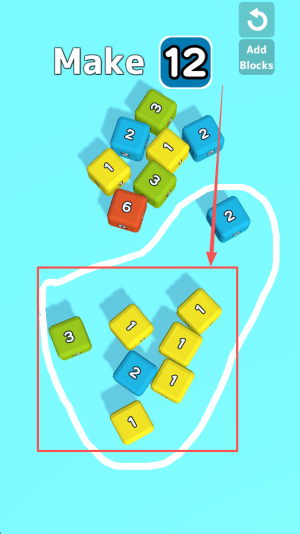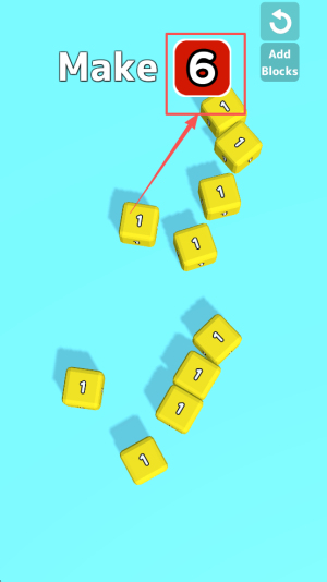 4、最后,成功达到目标数字后,点击“Add Blocks”按钮添加更多方块,继续游戏。