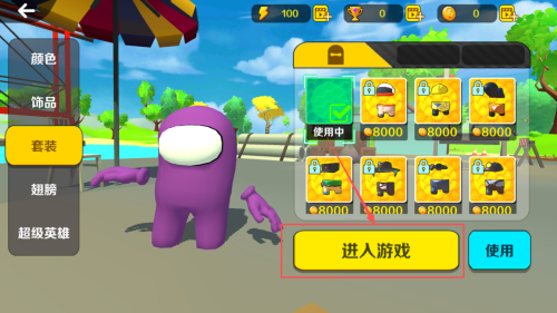2、如何定制角色:在主界面,点击“仓库”按钮,然后选择“套装”来装备不同的服装和饰品,点击“进入游戏”按钮确认选择。